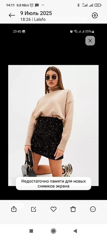 - Юбки с пайетками: мини, миди и макси. Плотная расшивка блестками по всей поверхности, эластичный пояс на резинке, прямой или слегка зауженный крой. Цвета: серебро и черный (в мерцании, с глянцевым эффектом).