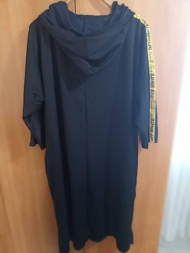 - Черная накидка-худи оверсайз длины миди, спущенная линия плеча, рукав до локтя.