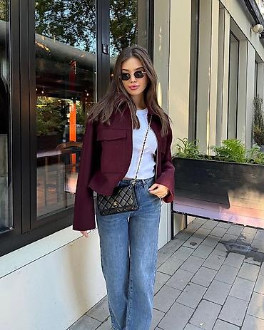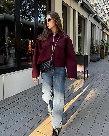 • Укороченная женская куртка-шерпа цвета бордо. - Прямой силуэт с