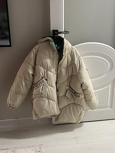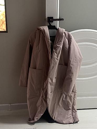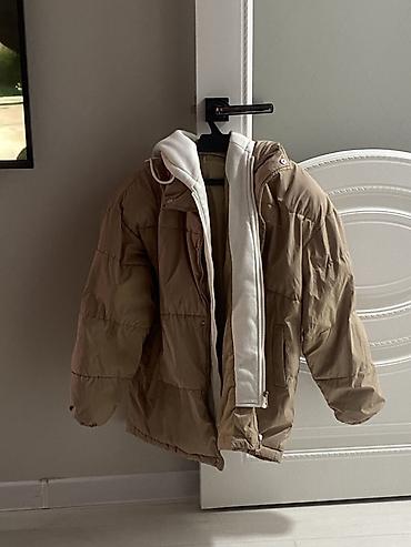 Женская куртка-кокон Uniqlo - Фасон: укороченный пуховик свободного кроя (cocoon), объемные горизонтальные прострочки. - Цвет: молочный/айвори. - Застежка: молния по центру. - Ворот: высокий стояч...