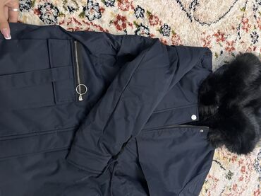 Тёплая зимняя парка Новая не одевали так как размер большой отказался тёмно‑синего цвета. - Утеплённая, стёганая, длина до середины бедра. - Капюшон с меховой опушкой и мягкой тёплой подкладкой; в...