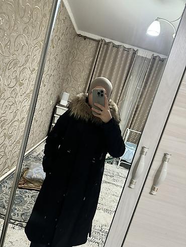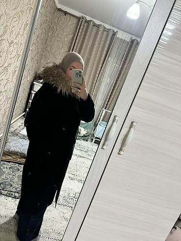 Женская зимняя парка, черного цвета, длина миди.