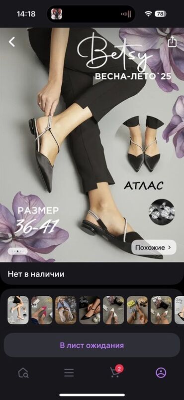 Балетки/слинги Betsy, коллекция Весна–Лето’25.