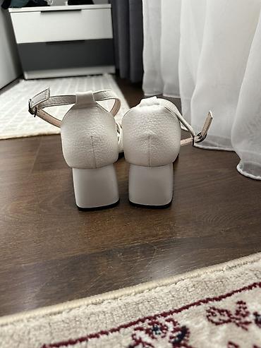 Белые женские босоножки на устойчивом каблуке. - Минималистичный дизайн: тонкие ремешки через пальцы и вокруг щиколотки. - Каблук широкий, средней высоты (ориентировочно 5–6 см) для удобной ходьбы...