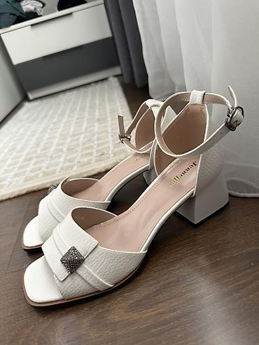 Белые женские босоножки с открытым мыском и задником-ремешком. Кожа . В отличном состоянии. Размер: 40 Каблук:6см Подходят для повседневной носки и офиса, хорошо сочетаются с платьями, брюками и...