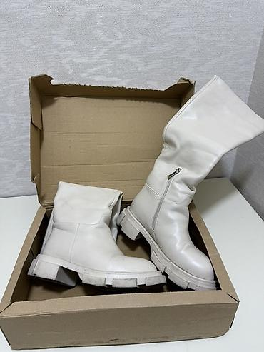 Белые женские сапоги на массивной подошве.