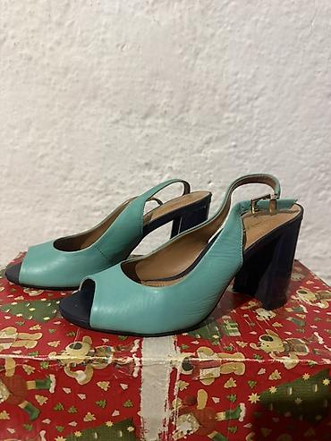 Босоножки кожаные б/у38 размер,каблук 5-6см. Смотрятся неординарно