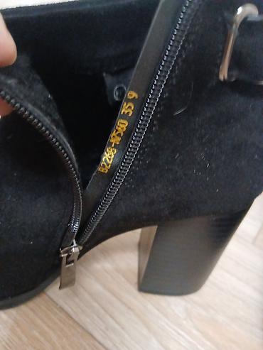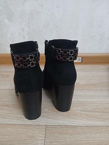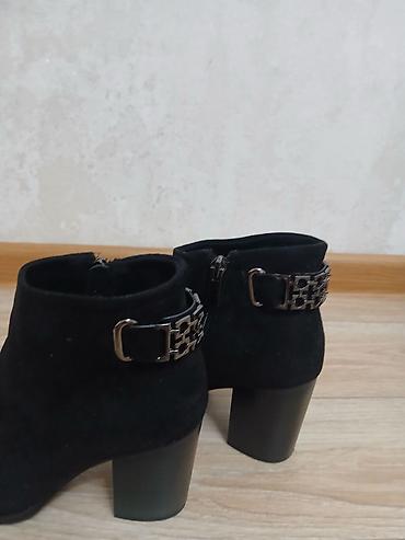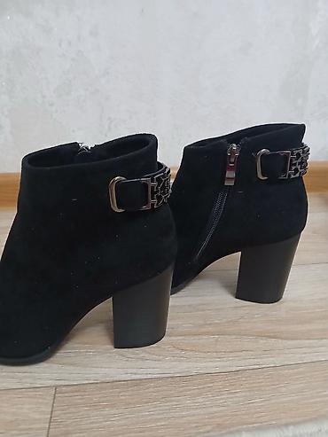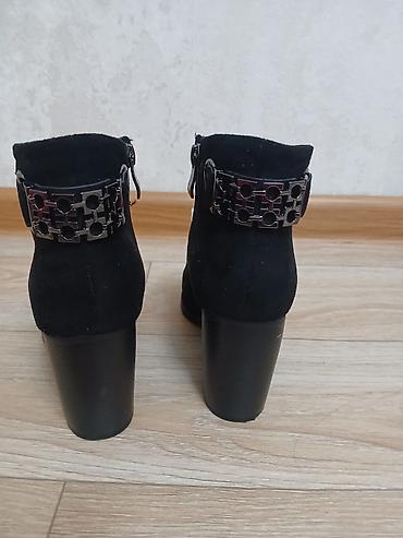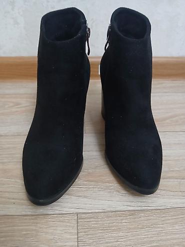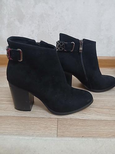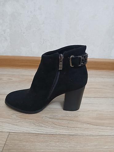 Женские ботильоны, черные. Замша не натуральная, но качество хорошее. Одевала один раз на той.