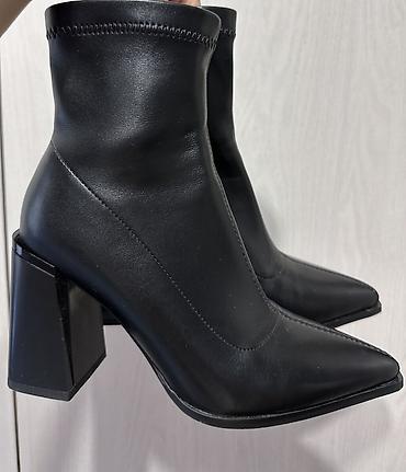 Женские ботильоны-чулки, черные. - Форма носка: острый. - Каблук