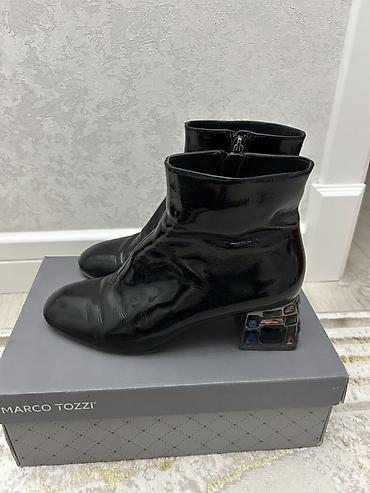 Женские черные сапоги-ботильоны - Материал верха: гладкая черная кожа