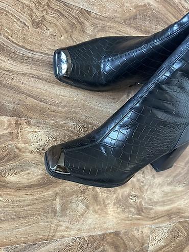Эффектный дизайн за счет квадратного мыска и металлического элемента, устойчивый каблук для комфортной носки.