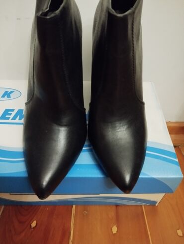 Женские ботильоны на высоком каблуке - Цвет: черный - Материал верха: гладкая искусственная кожа (визуально матовая) - Носок: острый - Каблук: высокий фигурный «рюмка/флэр», устойчивый, с расширен...