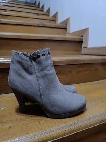 Женские ботильоны на каблуке. - Материал верха: замша (серый/тауповый