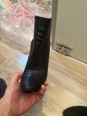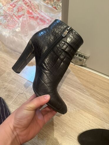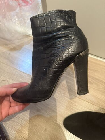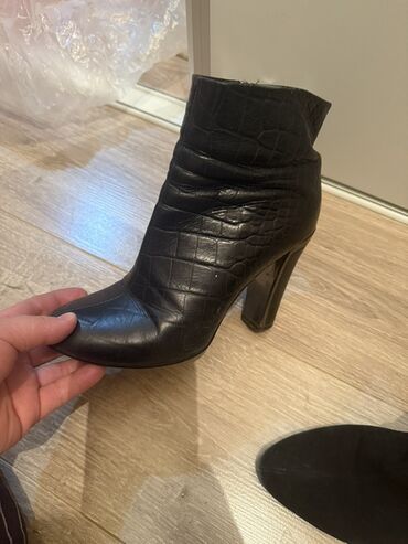 1) Черные кожаные ботильоны с тиснением под крокодила