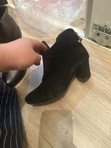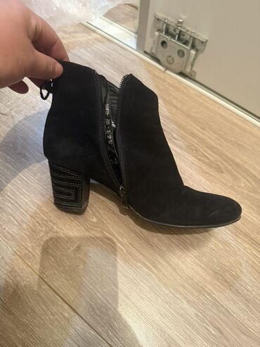 Женские осенние ботильоны, две пары: 1) Черные кожаные ботильоны с