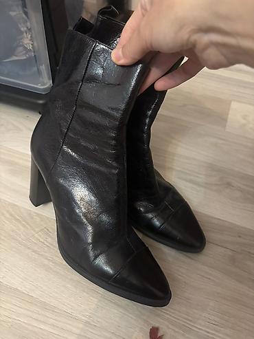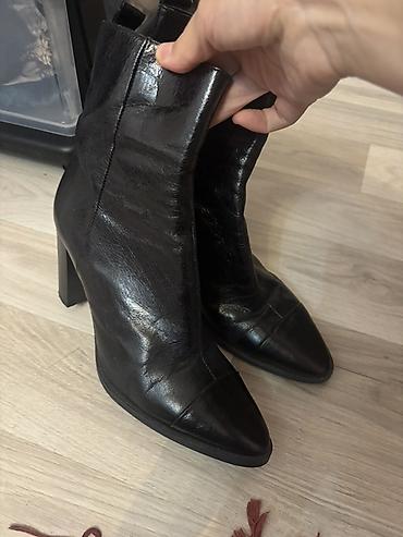 Женские ботильоны на каблуке - Материал: натуральная кожа (гладкая