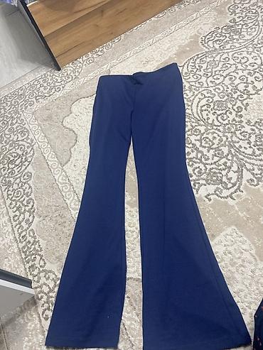 - Модель 2: тёмно‑синие расклёшенные брюки.