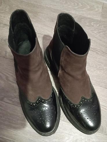 - Материал верха: комбинированная кожа — носок и окантовка из гладкой полированной кожи с перфорацией в стиле брог, голенище из матовой замши шоколадного цвета.
