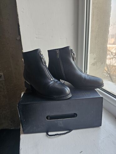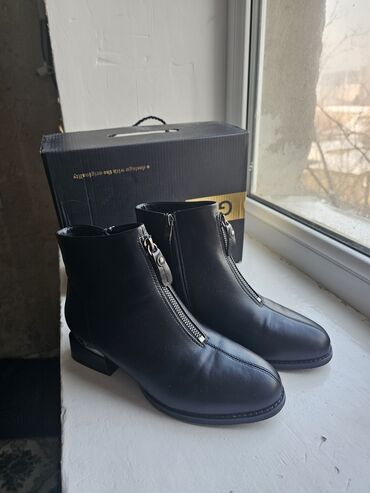 Женские черные ботинки/полусапоги на массивной подошве. - Материал верха: черная кожа (визуально гладкая). - Подошва: высокая, рельефная, с глубоким протектором для устойчивости. - Застежки: молни...