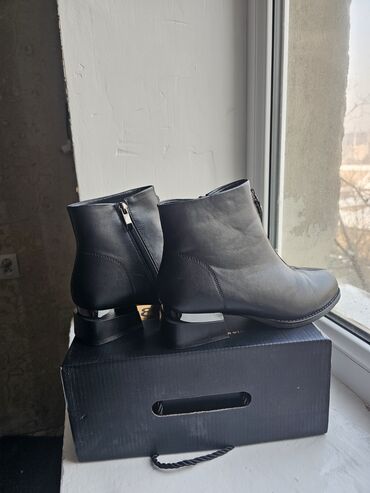 Женские черные ботинки/полусапоги на массивной подошве. - Материал
