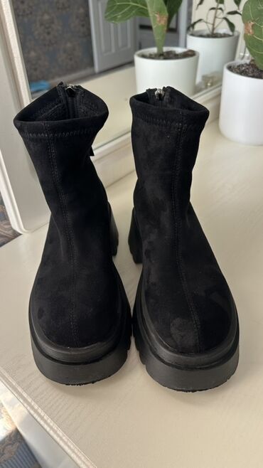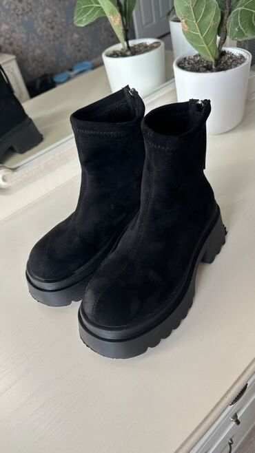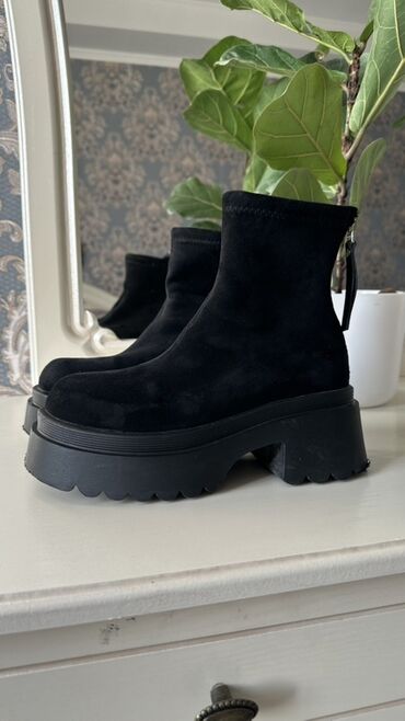 Б/у Черные женские ботинки-челси/ботильоны на толстой тракторной подошве.Размер 36