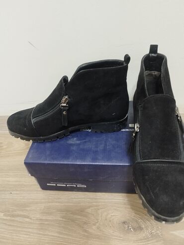 Женские черные ботинки/полусапоги на массивной подошве. - Материал