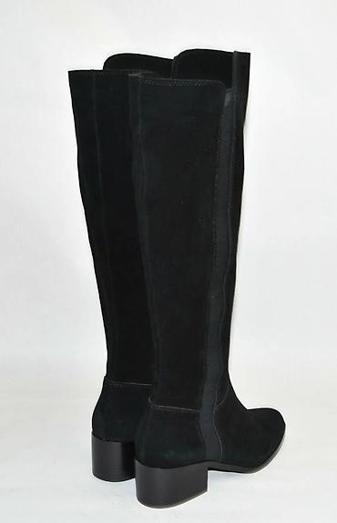 Высокие женские сапоги ботфорты из замши и кожи, размер 38. - Материал верха: плотная темно-коричневая замша в сочетании с гладкой кожей на задней части голенища и пятке - Детали: декоративные кож...