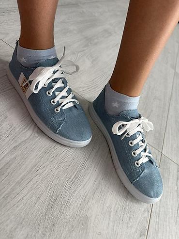 Легкие женские кеды из светло-голубого денима. Характеристики: -