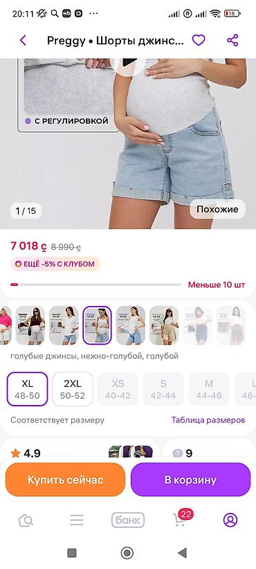 Идеальны для повседневной носки в период беременности: поддерживают растущий живот, не давят, хорошо держатся за счёт регулируемой трикотажной вставки. Приятный к телу деним, универсальный светло-голубой оттенок — легко сочетать с футболками и топами.