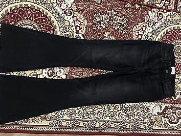 Женские джинсы-клёш, высокий пояс носила всего раз, размер не подошел - Цвет: чёрный с лёгким выцветанием по центру брюк - Посадка: высокая, с поясом на пуговице и молнии - Крой: расклёшенные от к...