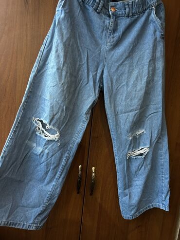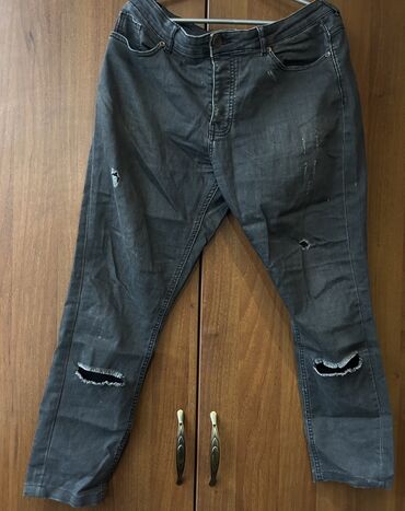 Джинсы, Трубы, Средняя талия, С бахромой, L, XL
