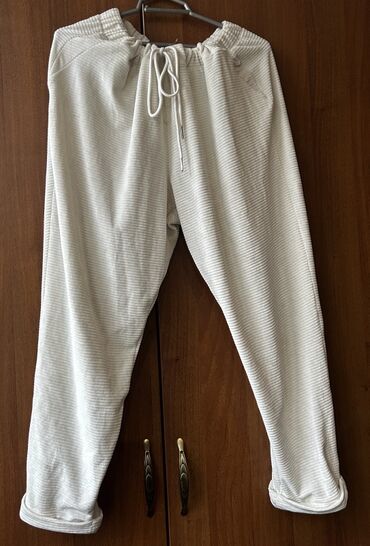- Детали: пять карманов, петли для ремня и металлическая фурнитура. Также доступна модель с декоративными потертостями и складками на коленях, а также модель с декоративными перекрещивающимися шнурками на манжетах штанин.