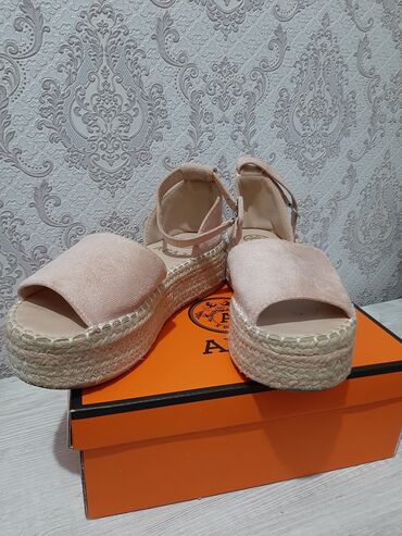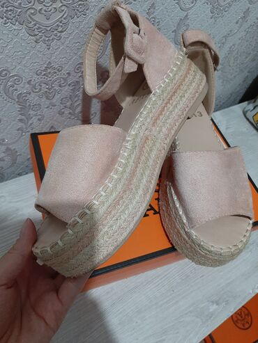 Элегантные женские эспадрильи на платформе с открытым носком и регулируемым ремешком на щиколотке. Верх выполнен из мягкого материала нежно розового цвета, а высокая подошва декорирована плетением из джута, что придает обуви летний и легкий вид. Эти сандалии идеально подходят для повседневной носки, прогулок или для создания стильного образа в теплое время года, обеспечивая комфорт и устойчивость. Выход 2 раза, в хорошем состоянии 🔥Размер 36. Покупала за 2000 сом, отдаю за 1000 сом.