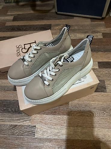 В комплекте: фирменные коробки, белые стельки в бежевой паре видны на фото. Стильные, легкие, подходят под casual-образы и прогулки. Цвета: бежевый/белый и черный. Размеры указаны на стельках на фото (визуальная оценка).