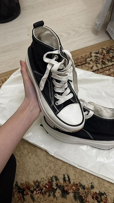 Высокие кеды Karl Lagerfeld - Размер: 36 - Цена: 100$ - Материал верха: текстиль и синтетическая кожа с серо‑черным геометрическим принтом - Носок: усиленный белый резиновый - Подошва: массивная м...