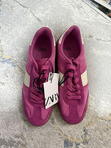 Кроссовки женские ZARA, размер 36.стопа 23.4 По нашему 37 размер - Цвет: молочный/бежевый с бордовыми акцентами на пятке. - Верх: фактурная экокожа с замшевыми вставками по носку и бокам. - Подош...