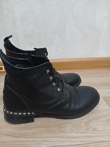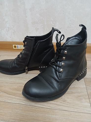- Декор: металлические заклепки-пирамидки по линии шнуровки и вокруг каблука, петли-на-тяги сзади