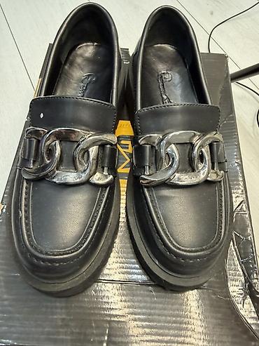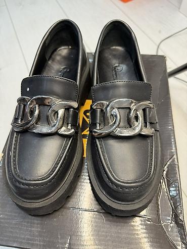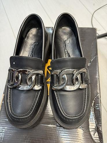 Лоферы женские черные с массивной металлической цепью Размер 36 Турция