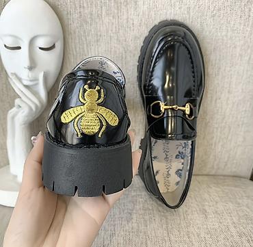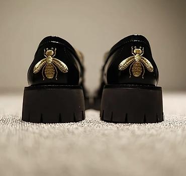 Лоферы женские, лаковые, черные. - Материал верха: глянцевая лаковая кожа/эко-кожа. - Декор: объемный бант и металлическая эмблема-пчела на ремешке. - Носок: закрытый, округлый. - Подошва: низкий ...