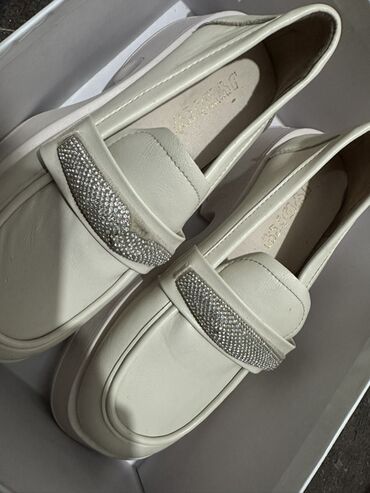 Женские лоферы цвета айвори с декором из страз.