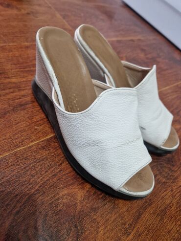 Цвета на фото: белый, бежевый, темно‑серый (мюли); карамельно‑коричневый с темной подошвой (ботинки).