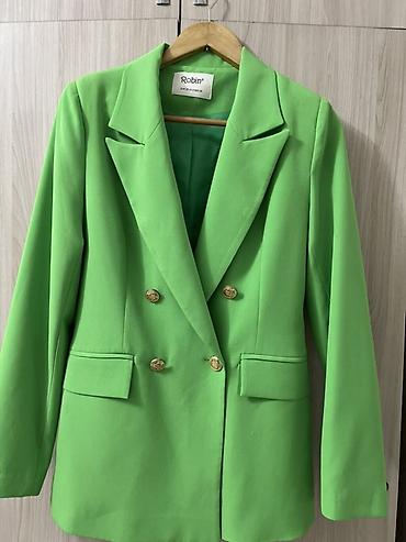 Женские пиджаки — 2 модели 1) Ярко‑зеленый двубортный пиджак Robin -