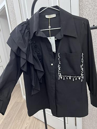 1) Черная рубашка с асимметричным декором: