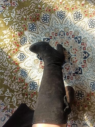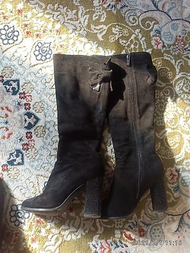 Высокие женские сапоги, черные. - Материал верха: бархатистая