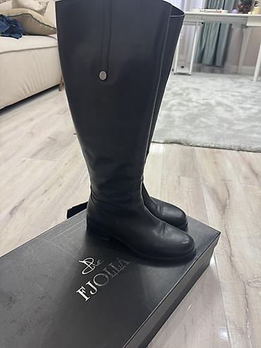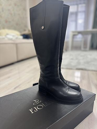 Высокие женские сапоги из черной гладкой кожи. - Высота голенища: до