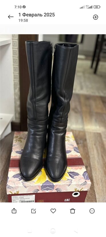 Женские сапоги черного цвета до колена. - Материал верха: натуральная