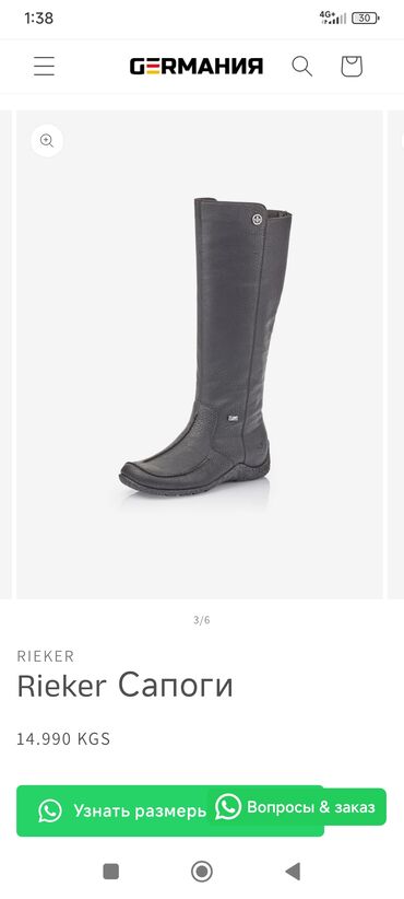 Сапоги, 38, Rieker, Новый, цвет - Черный, Самовывоз
