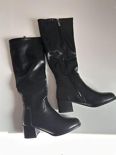 Высокие женские сапоги-ботфорты, классический черный цвет. - Материал верха: гладкая экокожа/кожа Брала за 5000 Надевала пару раз ,почти новые