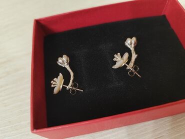 Продаю серьги-пусеты в форме цветущей ветки с цветами. Верхний цветок выполнен из эмали и нижний из серебра 925 пробы.