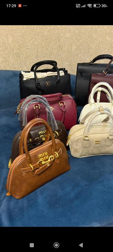 - Модель 2: компактные овальные/боулен-бэг сумки с логотипом «miu miu» на передней части.